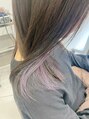 ちらっと魅せるインナーカラー。ほどよく目立たせ、なじむくらいに入れています。淡いラベンダーカラー、人気です!ケアブリーチで負担を最小限に抑えながら施術します。紫は黄色味を抑えた柔らかな印象になります♪ベースの色味はくすみ感のあるグレー系に。