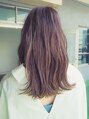 鎖骨ラインのミディアムボブスタイルに、顔まわりにたっぷりレイヤーを入れて柔らかな印象に。ヘアカラーは、7レベルのココアブラウンカラーで透明感のある質感に仕上げました。前髪もレイヤーのバランスに合わせてシースルーバングに。