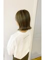 結べる長さで切りっぱなしにしてあります。明るめのベースを生かしてオリーブグレージュで透明感を演出してあります。【縮毛矯正/ショート/リタッチ/ヘッドスパ/白髪染め/白髪ぼかし】