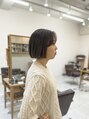 襟足ギリギリのミニボブ。首元が詰まっている服でも綺麗に見えます。アイロン後オイルをつけたり、オイルをつけコーミングするだけでもオシャレ感が出ます◎