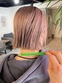 薄く淡いピンクベージュ^_^ピンクは2回に分けて入れますので、淡くてもできるだけしっかり発色させます。2ブリーチ推奨です^_^
