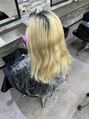 リタッチをして全体をホワイトに♪更にIRONOWA髪質改善トリートメントでサラ艶に♪エクステ80枚をつけて量感のあるロングに