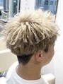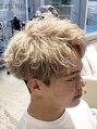 ハイトーンツーブロックアップバング刈り上げミルクティー束感