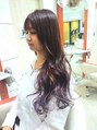 ロングスタイルブリーチにレッド系とバイオレット系カラーでオンカラー。アイロンで巻いた時の質感が可愛い感じに!