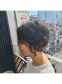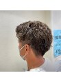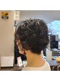 ショートパーマスタイル☆全体に大きいカールで動きをつけてオイルとムースでスタイリング(^ー^)セットが楽になります!えりあしを短めにすることでメリハリも出て素敵になります☆[北千住駅/北千住/白髪染め/髪質改善/ハイライト/縮毛矯正/メンズ]