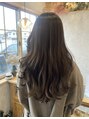 ブリーチ無しでも柔らかな色味オリーブベージュのロングヘア根元から自然なグラデーションで伸びてきても気になりにくいカラーです