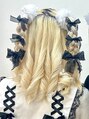 ハーフアップなので巻きが取れないように強めに巻き巻き!スプレーたっぷり!ツインで三つ編みしてリボンパーティー♪顔周りもゆるく巻いて、前髪くるんしてぶりぶり可愛く(*´▽`*)お友達とお揃いでセットすればテンションアゲアゲです!リボン販売してます