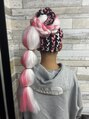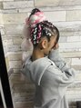 ピンクと白のファイバーでコーンロウとタマネギヘアー