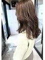 カット/やや前上がりのワンレンロングカラー/明るめのベージュ