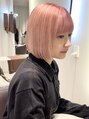 美しいカットラインのミニボブと淡いハイトーンカラーは相性◎毛量をあえて重たく残す事で広がりを抑えています。
