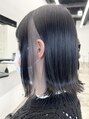 1_カットはワンレンボブベース 2_頭のフォルムを重視し 3_軽めな毛先は外ハネアンニュイカールさせ 4_カラーはブルーブラック&インナーはホワイトグレージュに //メニューはインナーカラー or イヤリングカラー+上の部分のカラー+3000