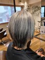 グレイカラー×縮毛矯正 クセのあるグレイカラーは、縮毛矯正を施術するとおさまりはもちろん、ツヤ感がアップして日々のお手入れが楽になります!
