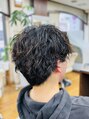 ツイストスパイラルの緩めです。毛先はあまり入れ込まず、少しツンツンさせた感じになっています!