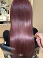 ハイトーンカラーでもケアをしっかりするとこのツヤ感で施術できます!ピンク系でも少しラベンダーを混ぜて落ち着きと抜け感のあるカラーに!
