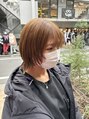 さっぱりとしたウルフカットに明るめベージュカラーに、イヤリングカラーで透明感のあるベージュで遊び心のあるスタイルです。ウルフカットでも明るいカラーにすることで、重たいイメージがなくなり誰でも挑戦できるスタイルになります。