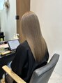 肩にちょうどつかないくらいのミディアムレングスのスタイルです!少しくびれのあるシルエットなので重たくなりすぎず全体にスッキリとした印象になります!バングはシースルーなのでさらにナチュラル感が増しヘルシーに!