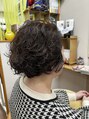 しっかり大きめのウェーブが出る感じにパーマをかけました。整髪料で仕上げても良いし面倒な時はそのままでもウェーブがゆるくなる位なので、普段から洗い流さないトリートメントをお使いの場合はパサつきなんかも気にならないと思いますよ。