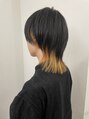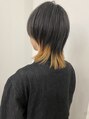 ウルフマッシュヘアの襟足にインナーカラー。ブリーチのみで明るくして、コントラストで束感が出るようにカットしてます。