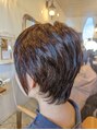 とにかくくせ毛が悩みやでしたが、、、このスタイルで逆に『くせがあるからのおさまりと、トップのいいボリューム感に』。ハンドブローのみで、ワックスつけて完成。