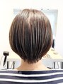 頭の形が綺麗に見えるラインで設定した丸みショート。プレックス剤を使用した中性域のダメージレスカラーでいつまでも美しい髪に◎