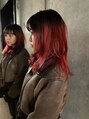 グラデーション、ダークレッド、レイヤーカット、赤髪