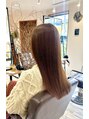 ストレートのロングスタイル。オレンジベージュでしっとり仕上げ。