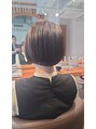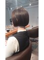 少し丸みをだしたカットラインのボブです。耳後ろに厚みがたまらないように、軽さをいれています。カラーはツヤのでる透明感カラー。色はミントブラウン