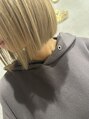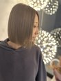 - ナチュラルハイトーンハニーベージュカラー前下がりぱつっとボブ