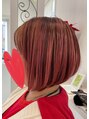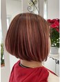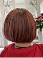 前下がりボブにカット♪表面にハイライトを入れピンク系でカラーリング♪
