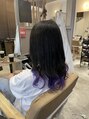 毛先にビビッドなバイオレットをいれて動きが出やすいスタイルにしました。