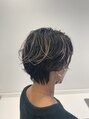 表面の毛先のみブリーチしたデザインカラー。最小限のブリーチで目を引くデザインに