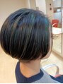 グリーンのバレイヤージュを細めでも目立つようにフロントメインにデザイン。色落ちしても品が悪くならないので挑戦しやすいハイライト。