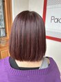可愛いながら、品のあるほんのりヴァイオレットが入ったピンクスタイル♪ベースがそれなりに明るければ、ブリーチ無しでこのくらいまでのクリア感を出すことは可能です☆顔まわりだけレイヤーを入れて、フラットに仕上げたボブとの相性も◎