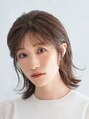 外ハネワンカールがポイントのタイトなウルフヘアは、耳掛けでスッキリとした雰囲気に。センターパートバングで抜け感を加えた、大人に似合うトレンドスタイルです。