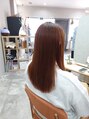 ハイトーンカラーがお好きで、細毛ので表面のパヤパヤが気になってしまう。傷みやすい髪質なので、低PH域で表面に作用しやすい還元剤のレシピ。しっかりツヤツヤサラサラになりました。