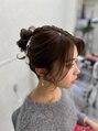 華やかめに中間より高めの位置でアップヘアを作りおくれ毛も出してみました。