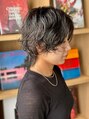 ウルフショートにゆるくランダムなパーマをかけたスタイルです。