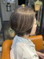 シンプルなボブスタイルに白髪ぼかしのハイライトを入れたスタイルです。あまり派手になり過ぎないように、白髪が多く出やすい部分を中心に、細いラインで品のあるデザインに仕上げました。
