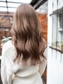 透明感たっぷりのミルクティーベージュカラー。柔らかい雰囲気で顔色をよく見せてくれるベージュカラーが可愛くて人気です。長めの前髪に大きく緩めに巻くスタイリングは顔まわりがスッキリして大人っぽさもでるのでおすすめです。【パーマ/ブリーチ/学割】
