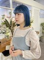 プツッとしたラインに高発色のブルーで退色まで楽しめるヘアスタイル