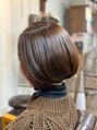 敏感肌専用プレミアカラー+エイジング60%コースでツヤ感アップとボリュームアップを同時に行いました。毛先は動きが出る様にしていますので、巻いたりのアレンジも楽しんで下さい。敏感肌とペタンコヘアーが気になる方、ご相談お待ち致しております。