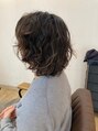 デザインパーマ髪質がストレートなので骨格の作りが分かりやすく出てしまうので絶壁ぽく見えてしまうとの事でした全体的にふわっと大き目のカールをしっかりつけカール感を楽しむスタイルに仕上げました