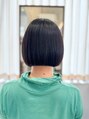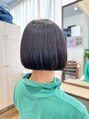 ボリュームを抑えてカットしたミニボブです。やや前下がりのシルエットなので、シャープで洗練されたイメージになります。ビジネスシーンにもピッタリ。うねりがある方、ボリュームが出すぎる方は、髪質改善をご一緒にされることをお勧めします。