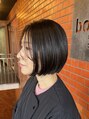 ハネない長さのアゴラインボブ。 顔周りにニュアンスを作りたかったので、前髪を落ちる長さに。