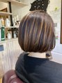 大人っぽいボブスタイル。ランダムなハイライトが可愛いです。