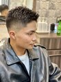 周りはミドルラインのスキンフェードトップは2ヶ月前に濡れパンを施し落ちかけのトップを毛先に動きを出すようにカット。サイドが浮きやすい方はここまでカットさせて頂けるとシルエットが決まります!