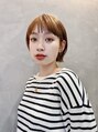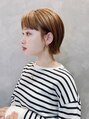 顎くらいの大人ショート、ミニボブ。オレンジベージュカラーで、透明感と柔らかい印象になれます。オイルバームを髪全体に馴染ませるだけのツヤ髪になれる簡単スタイリング。ハイライトを入れて透明感をプラスすることもできます。