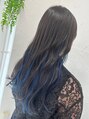 インナーカラーブルーネビージュ韓国レイヤーミディアムブリーチ