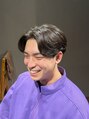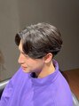 ミディアムショートの長さとクセを活かして、甘く優しい毛流れが好印象のセンターパートアップバングに仕上げました!前下がりのベースカットに、襟足と耳周りは刈り上げすぎないツーブロック。直毛の方はニュアンスパーマをかけるとセットしやすくなります。