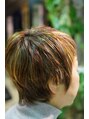 ブリーチonカラーのショートです。白髪に馴染むようハイライトを入れてます。